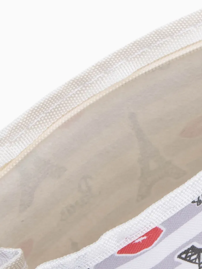 Косметичка на молнии, треугольная, маленькая, с рисунком, белая — Характеристики
