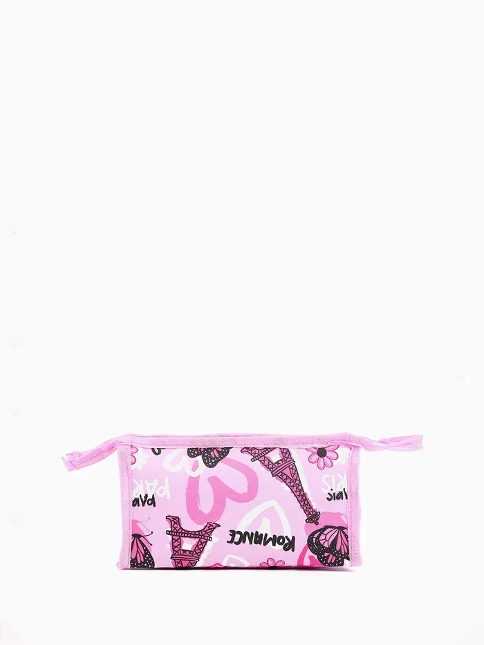 Элегантная розовая косметичка с романтичным принтом «Путешествие в Париж» — компактный аксессуар для хранения косметики и мелочей. Небольшой размер делает её идеальным спутником в сумочке или дорожной сумке, а прочная молния надёжно защищает содержимое. Искусственная кожа придаёт изделию стильный вид и упрощает уход.