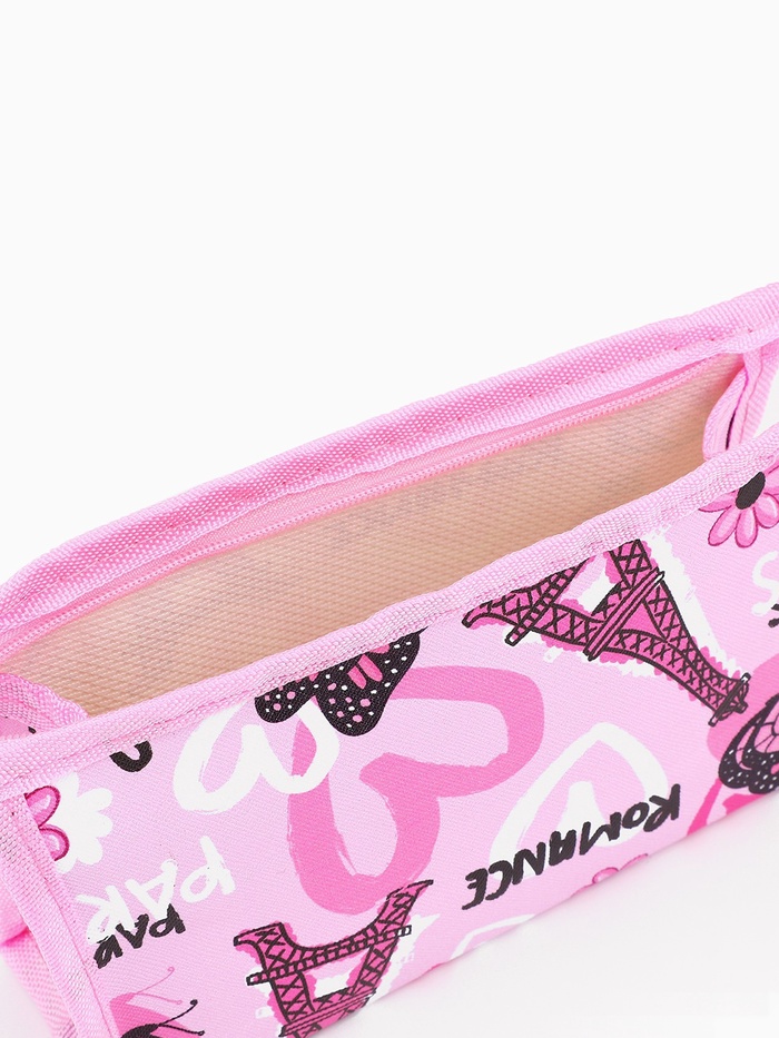 Косметичка на молнии, треугольная, маленькая, с рисунком «Путешествие в Париж», розовый — Характеристики