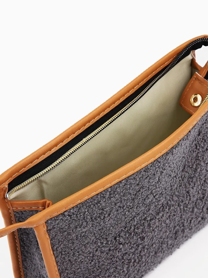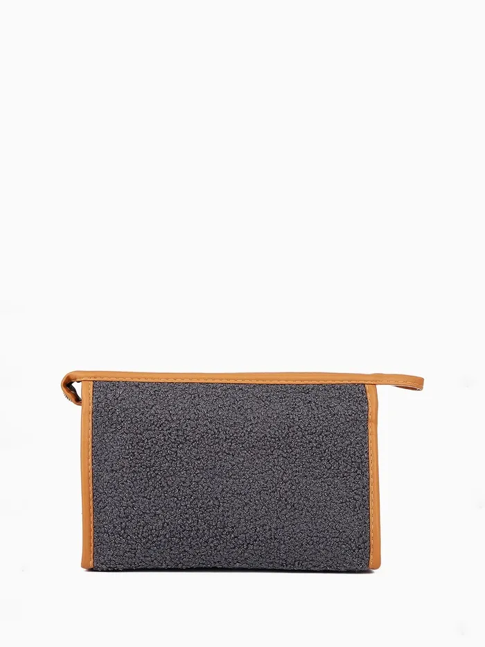 Косметичка на молнии, треугольная, плюшевая, серая — Характеристики