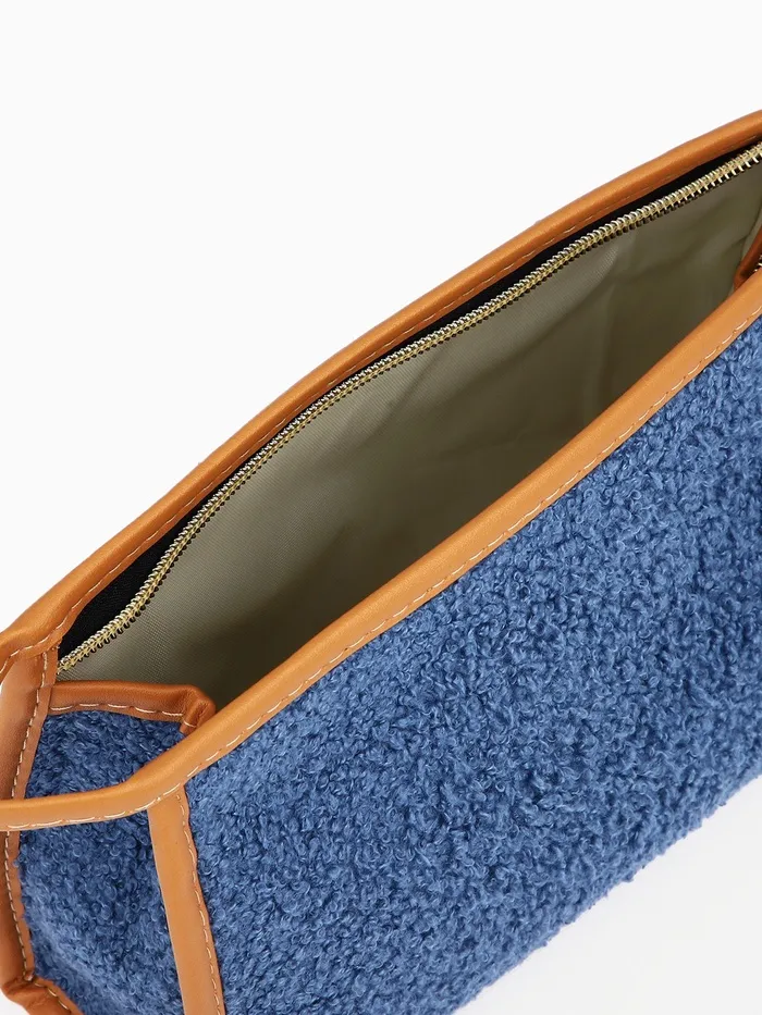 Косметичка на молнии, треугольная, плюшевая, синяя — Характеристики