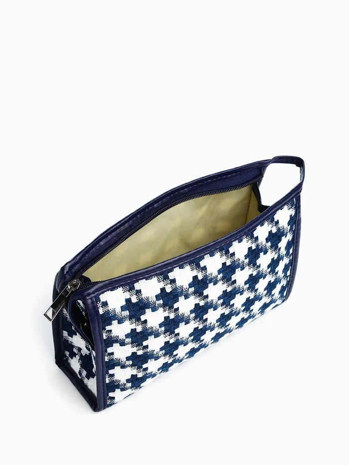 Косметичка на молнии, треугольная, с паттерном «Гусиная лапка», синяя — Характеристики