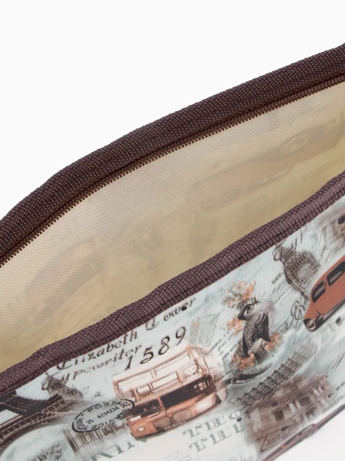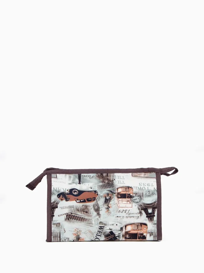 Стильная косметичка с французским колоритом — практичный аксессуар для хранения косметики и аксессуаров. Коричнево-серая косметичка с изысканным принтом придаёт парижский шик. Удобный средний размер подходит для ежедневного использования.