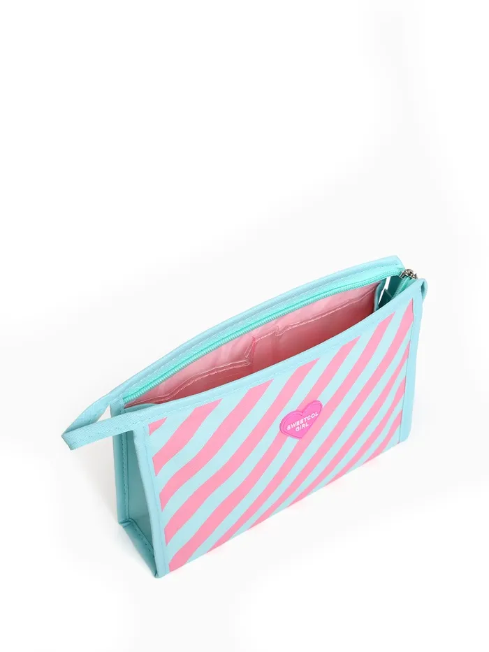 Бирюзовая косметичка это стильный аксессуар для хранения косметики. Искусственная кожа с рисунком «Sweetcol girl» и сердечками создаёт игривое настроение. Средний размер 22,5×16 см удобен для повседневного использования.