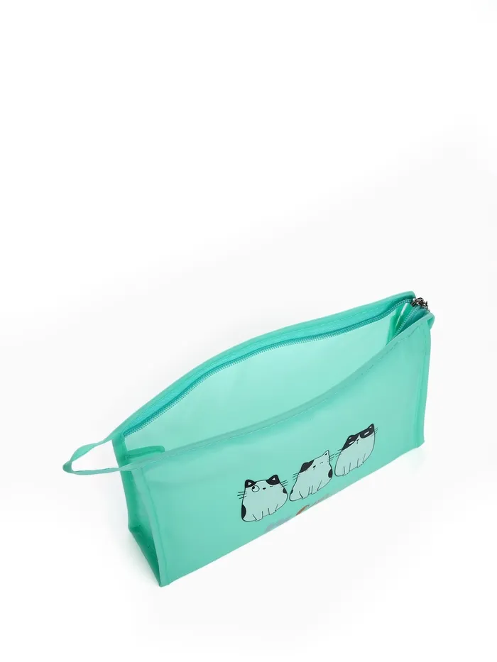 Косметичка на молнии треугольная с рисунком, зелёная — Характеристики