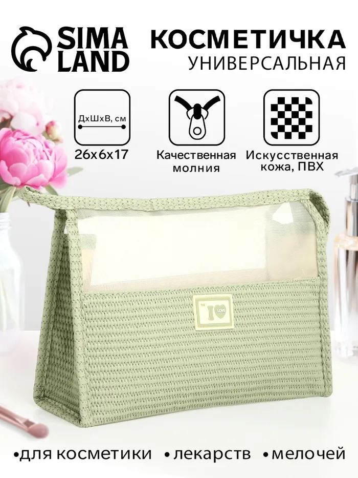 Косметичка на молнии, треугольная, с сеткой, зелёный — Характеристики