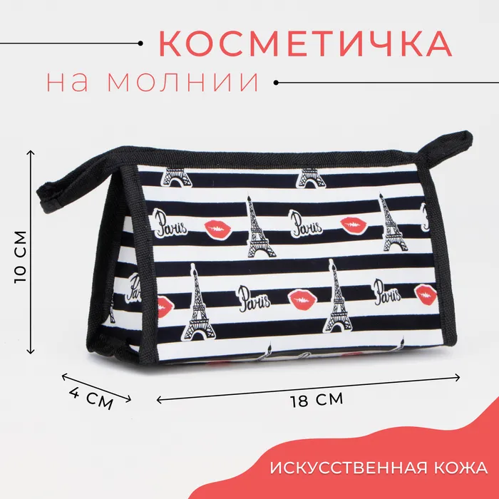 Косметичка на молнии, цвет чёрный/белый — Характеристики