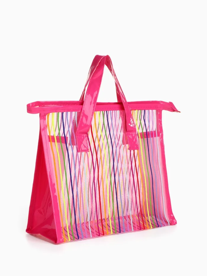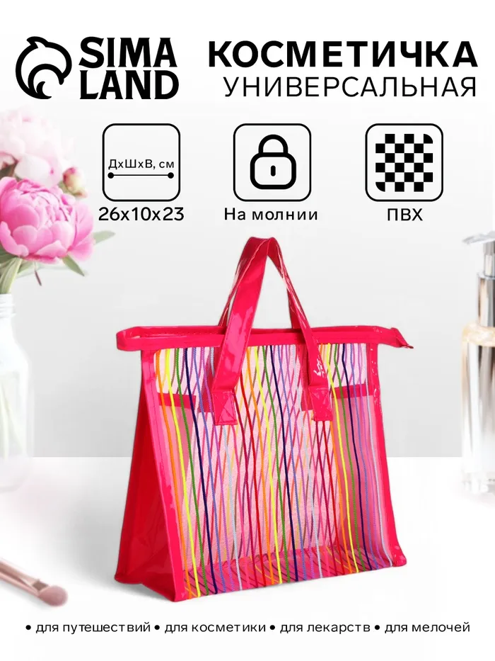 Косметичка на молнии в сетку, большая, с ручками, с рисунком «Полосы», МИКС — Характеристики