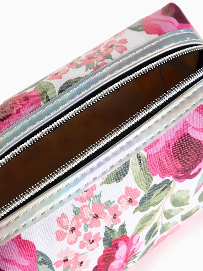 Косметичка на молнии женская, маленькая, с рисунком, белая/розовая — Характеристики