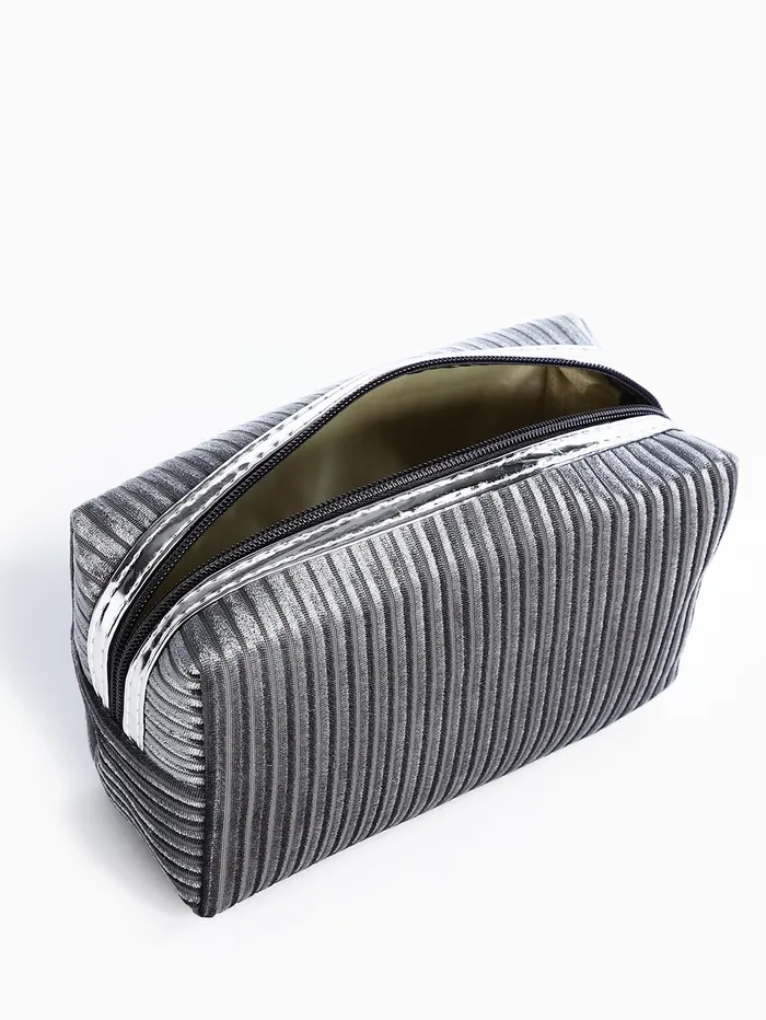 Косметичка на молнии женская, объёмная, маленькая, вельветовая текстура, серая — Характеристики