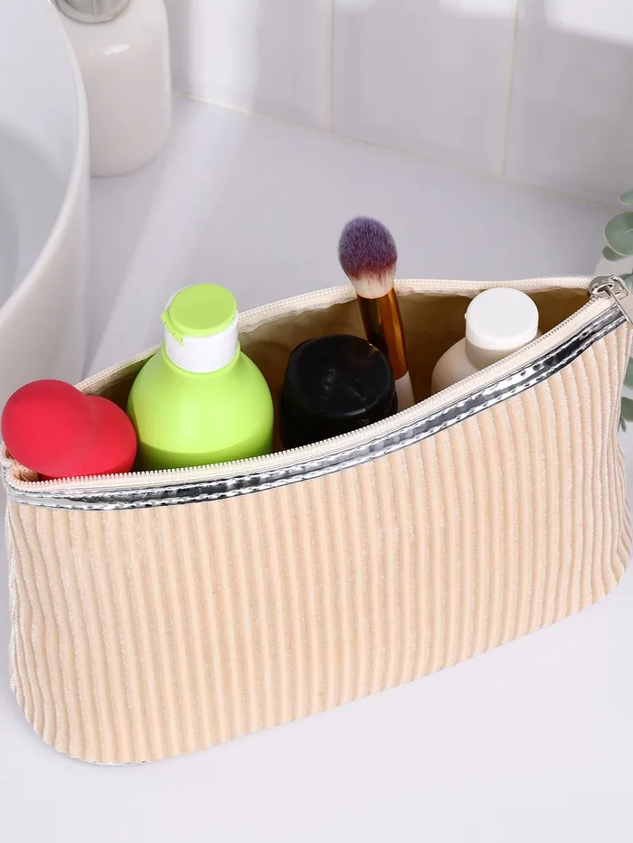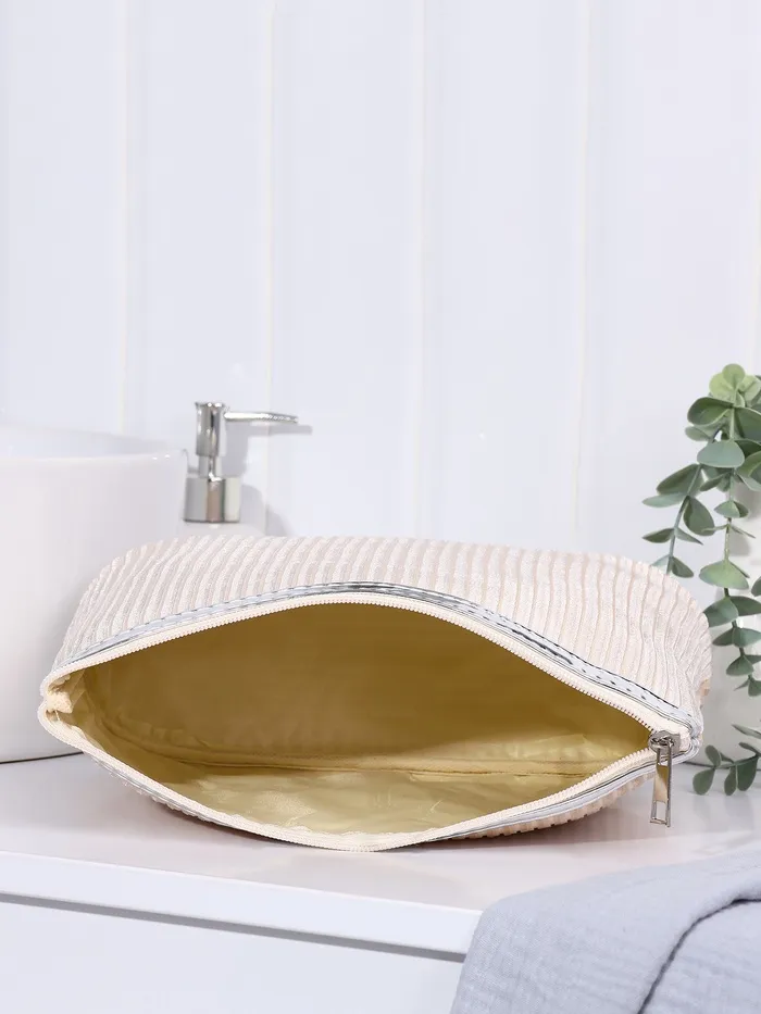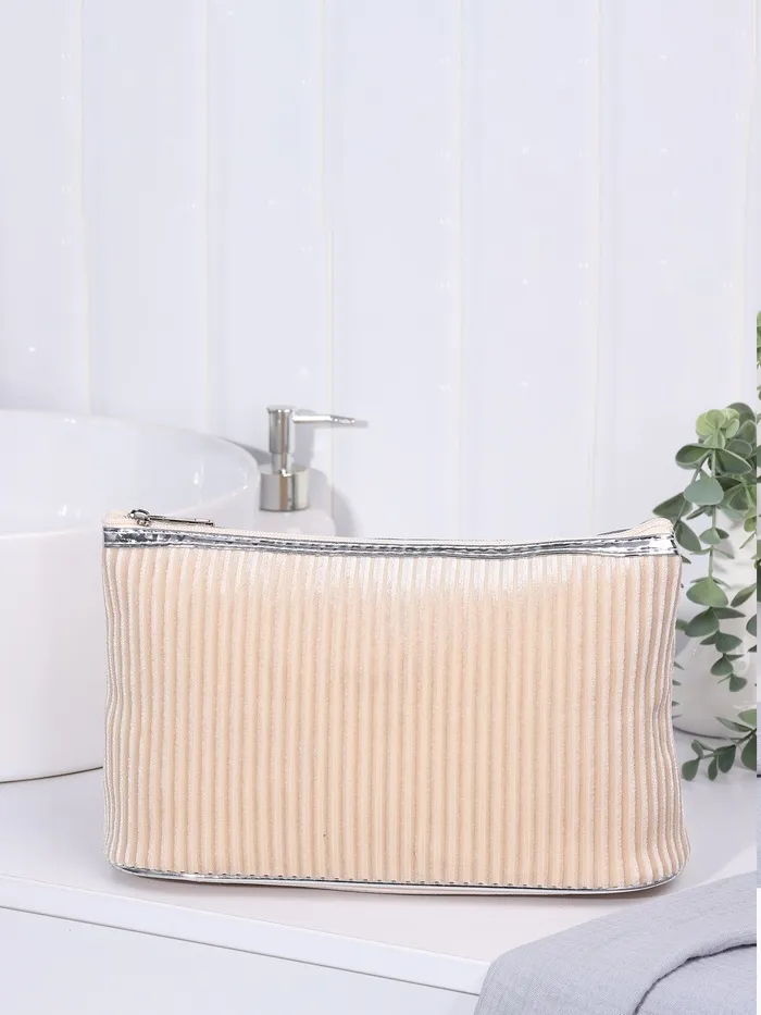 Косметичка на молнии женская, с подкладом, большая, вельветовая, бежевая — Характеристики