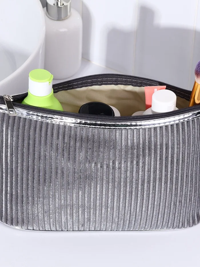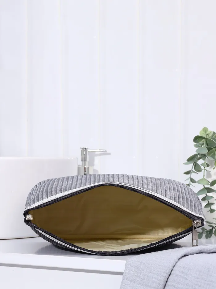 Косметичка на молнии женская, с подкладом, большая, вельветовая, серая — Характеристики