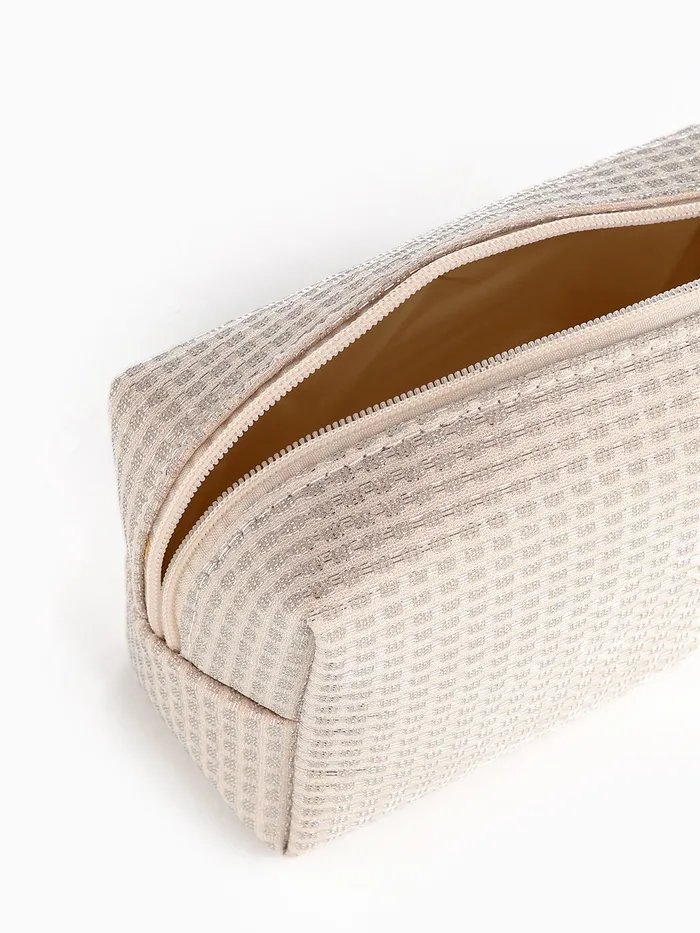 Косметичка на молнии женская, с подкладом, маленькая, бежевая — Характеристики