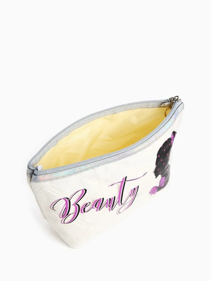 Косметичка на молнии женская, с подкладом, с рисунком, белая — Характеристики