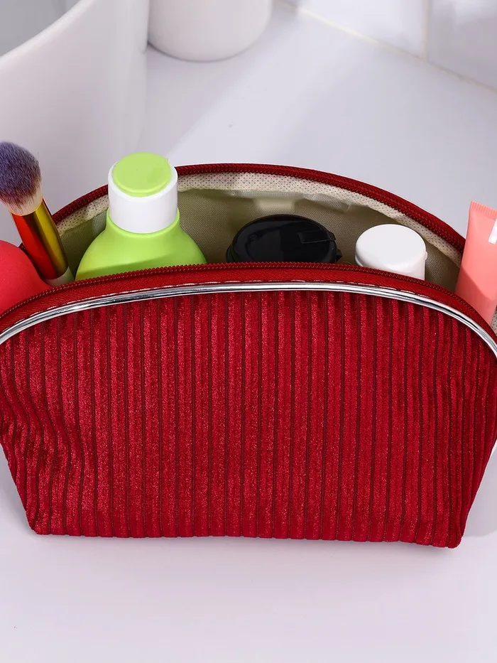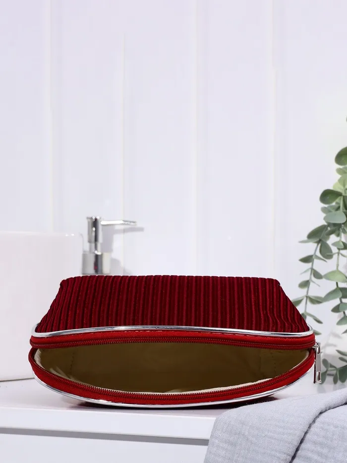 Косметичка на молнии женская, с подкладом, вельветовая, бордовая — Характеристики