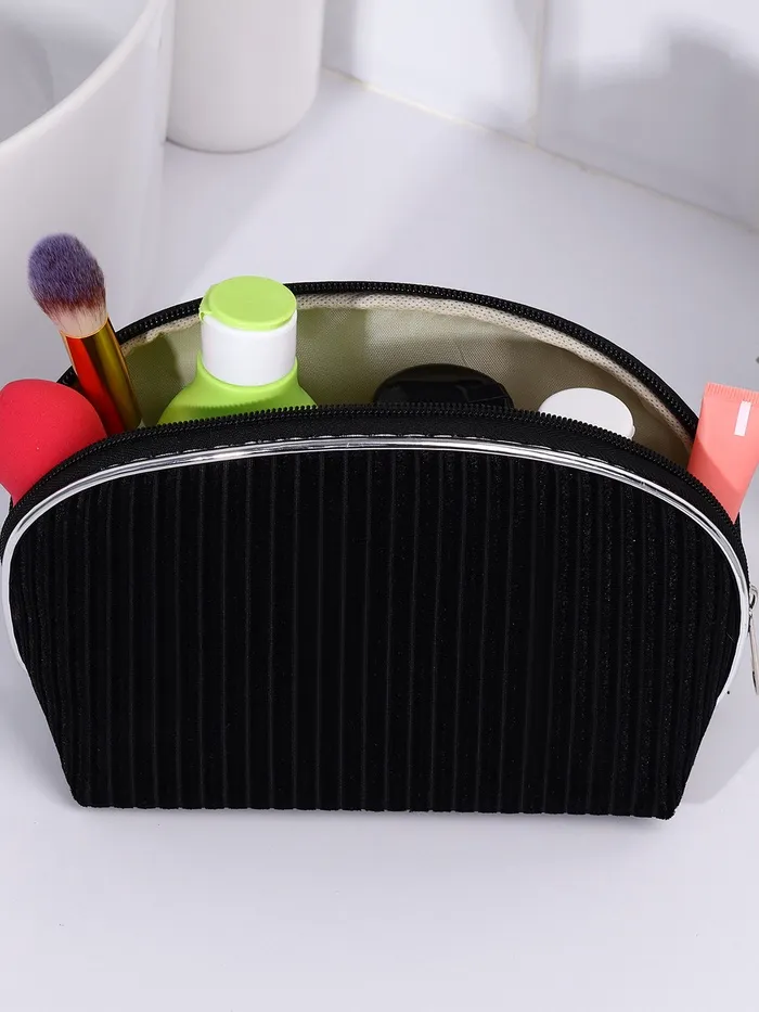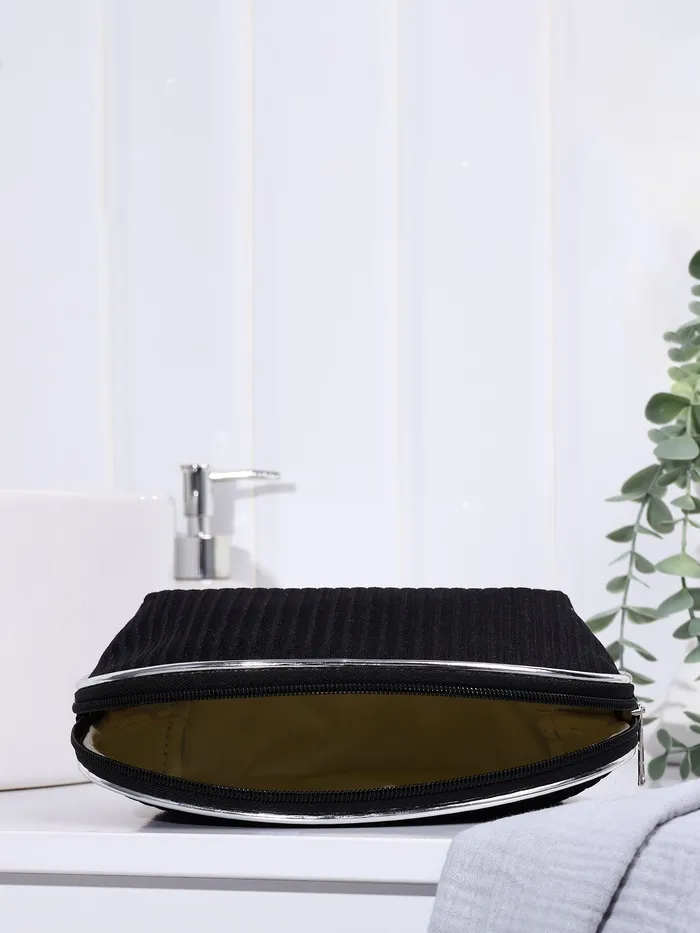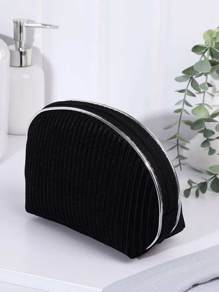 Косметичка на молнии женская, с подкладом, вельветовая, чёрная — Характеристики