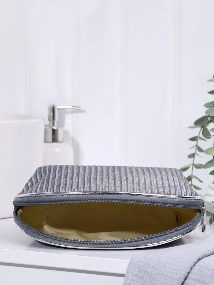 Косметичка на молнии женская, с подкладом, вельветовая, серая — Характеристики