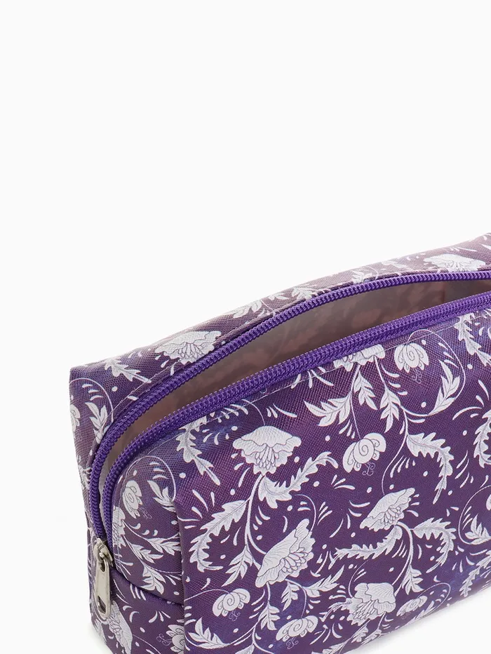 Косметичка на молнии женская, с рисунком, фиолетовая — Характеристики