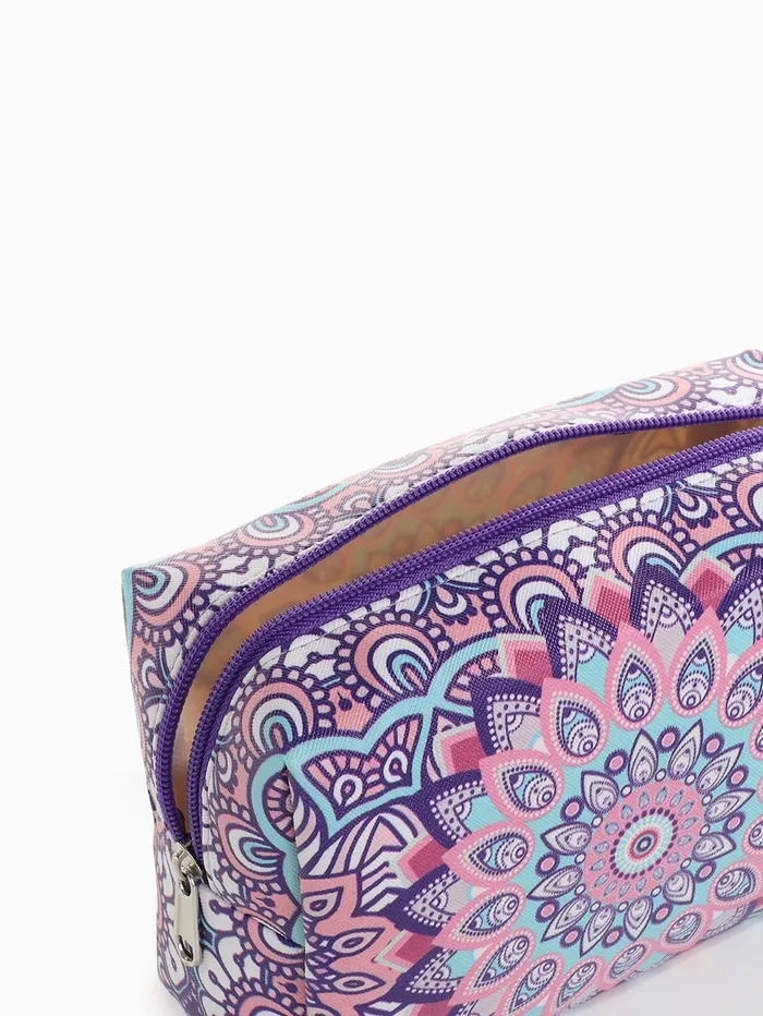 Косметичка на молнии женская, с ручкой, маленькая, с рисунком «Узор», сиреневая — Характеристики