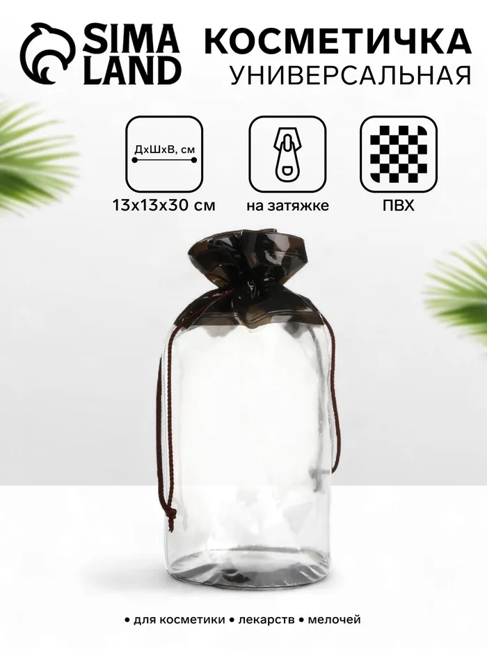 Косметичка на шнуре, цвет прозрачный/чёрный — Характеристики
