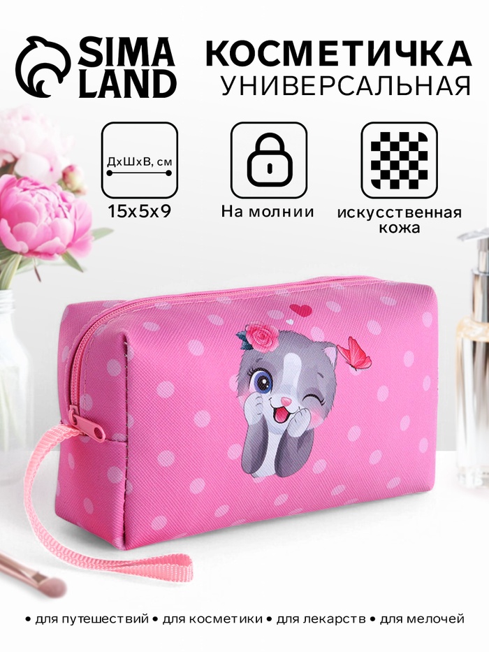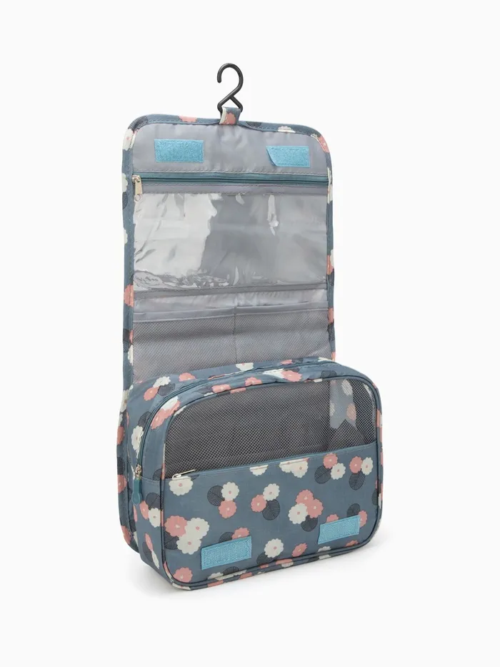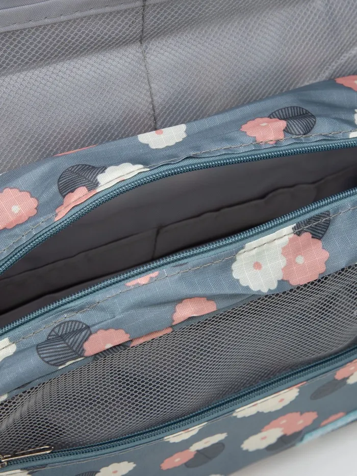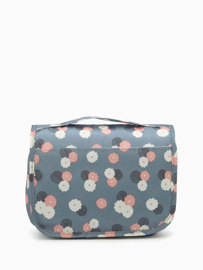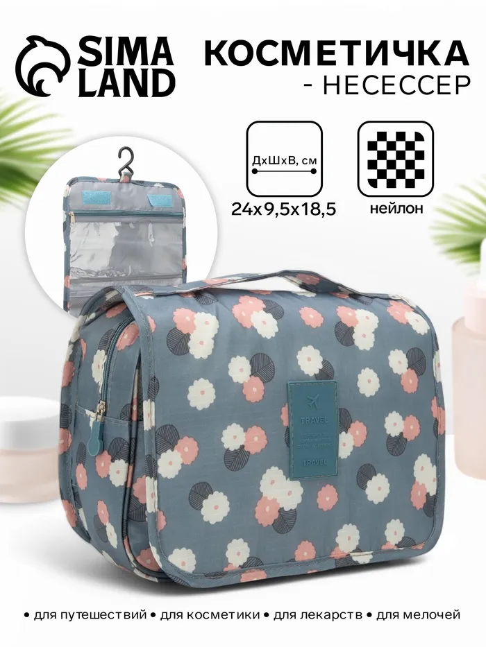Косметичка-несессер дорожная на молнии, липучках, с крючком, ручкой, рисунок «Цветы», серая — Характеристики