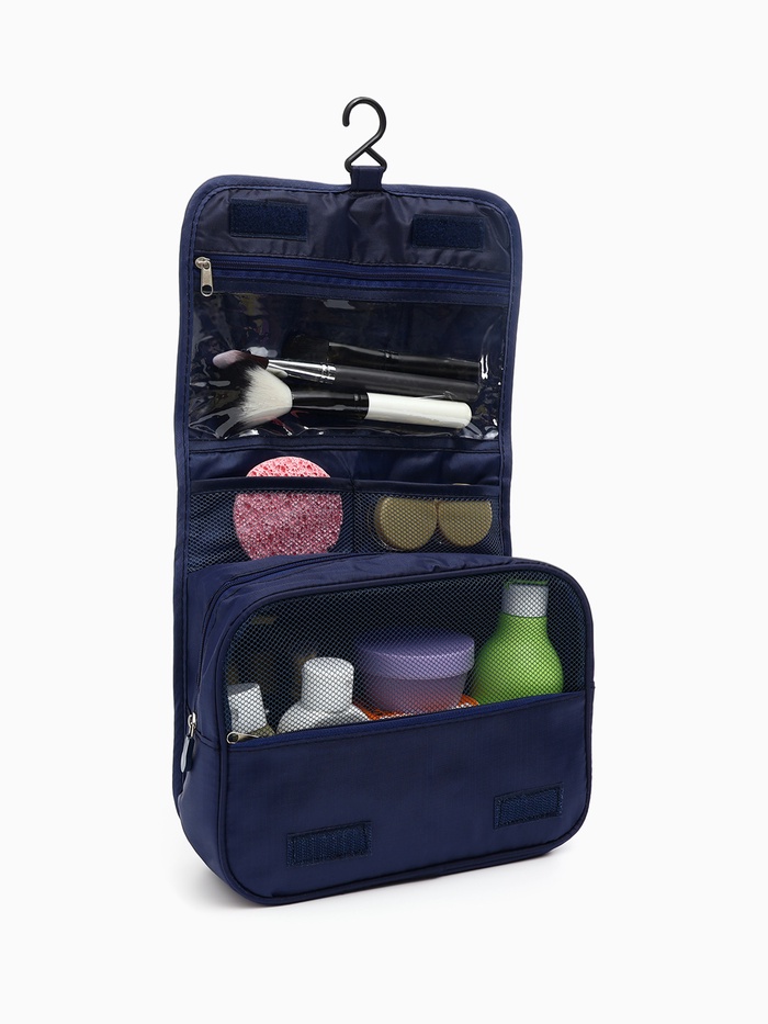 Косметичка-несессер дорожная на молнии, липучках, с крючком, ручкой, синяя — Характеристики