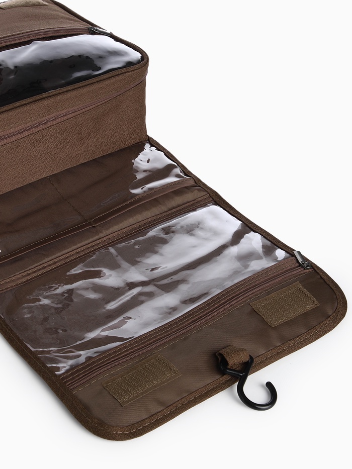 Косметичка-несессер дорожная на молнии, липучках, с крючком, ручкой, тёмно-коричневая — Характеристики