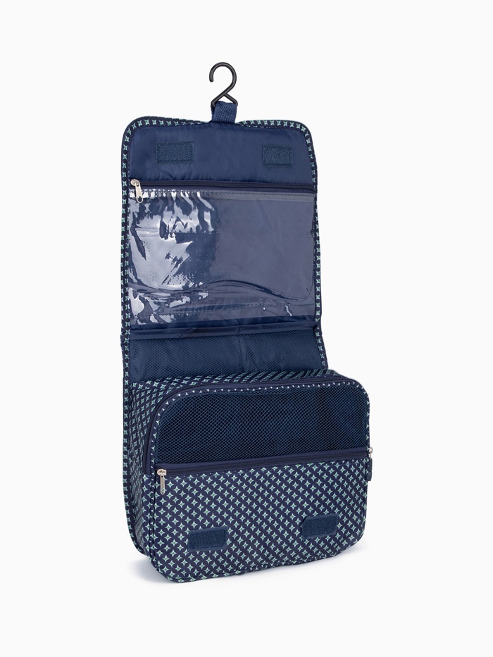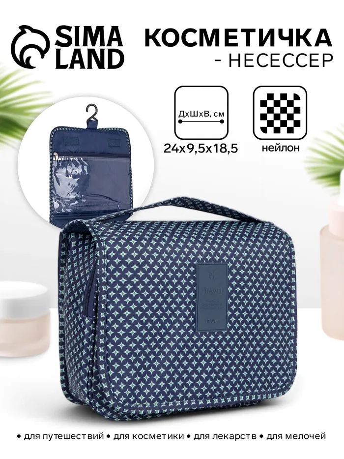 Косметичка-несессер дорожная на молнии, липучках, с крючком, с ручкой, «Горошек», синяя — Характеристики