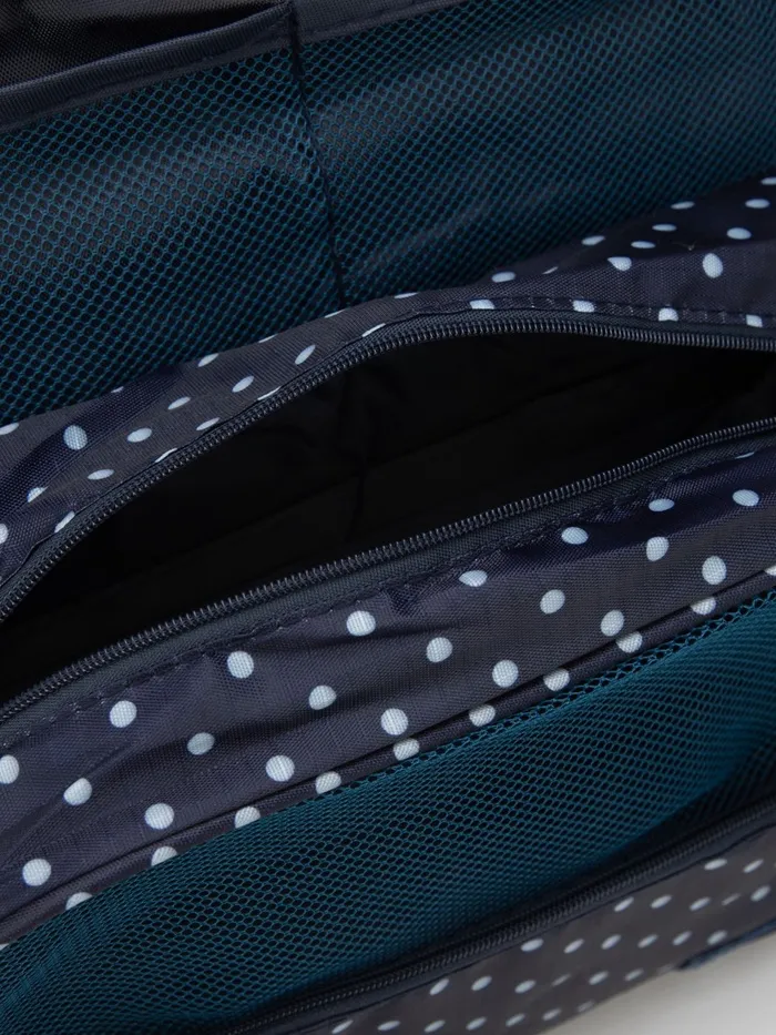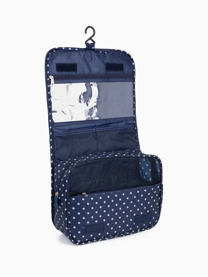 Косметичка-несессер дорожная на молнии, липучках, с крючком, с ручкой, «Горошек», тёмно-синяя — Характеристики