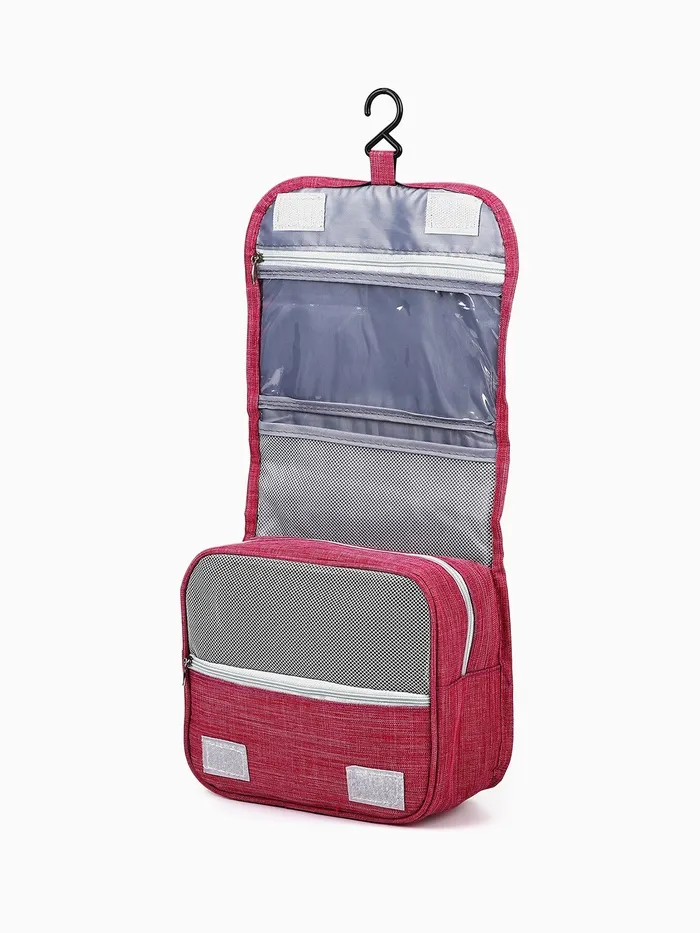 Косметичка-несессер дорожная на молнии, липучках, с ручкой, с крючком, розовая — Характеристики
