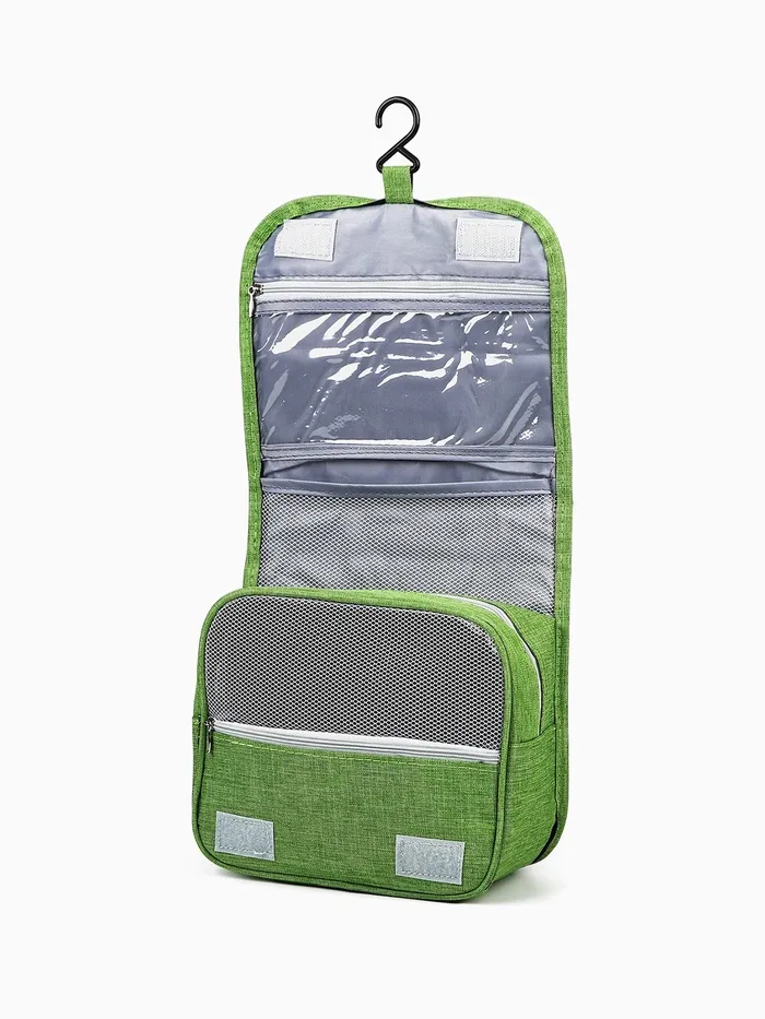 Косметичка-несессер дорожная на молнии, липучках, с ручкой, с крючком, зелёная — Характеристики