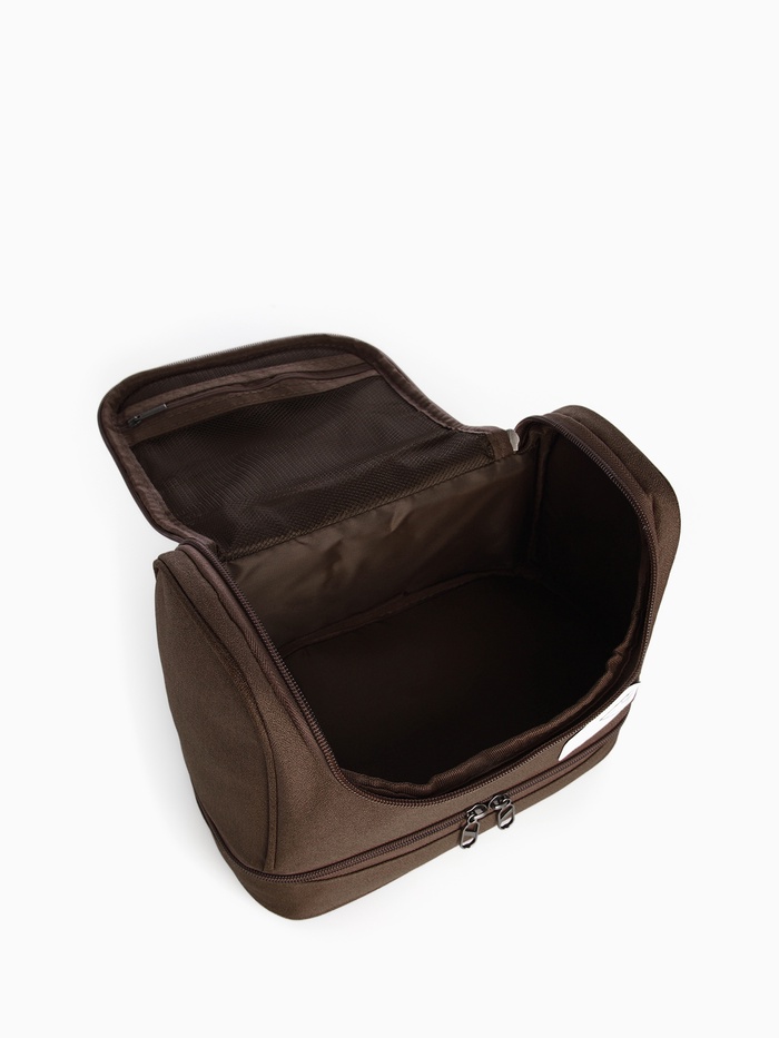 Косметичка - несессер дорожная на молнии, с ручкой, с отделами, коричневая — Характеристики