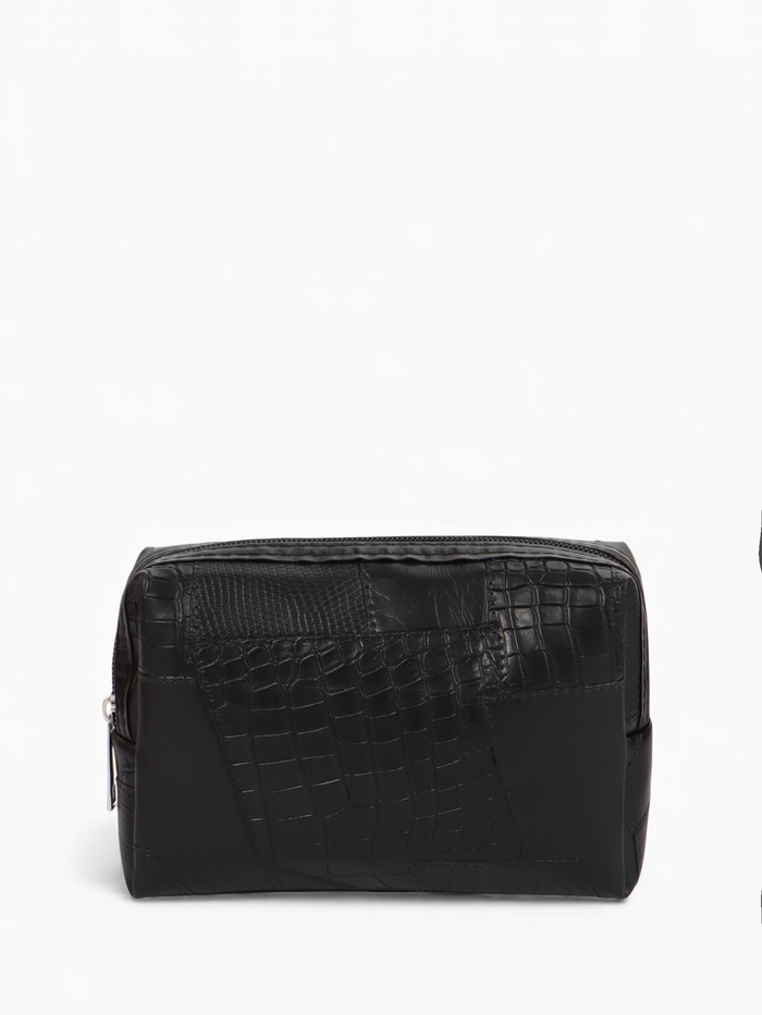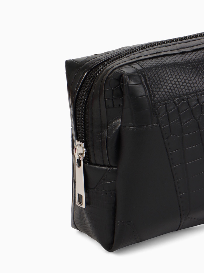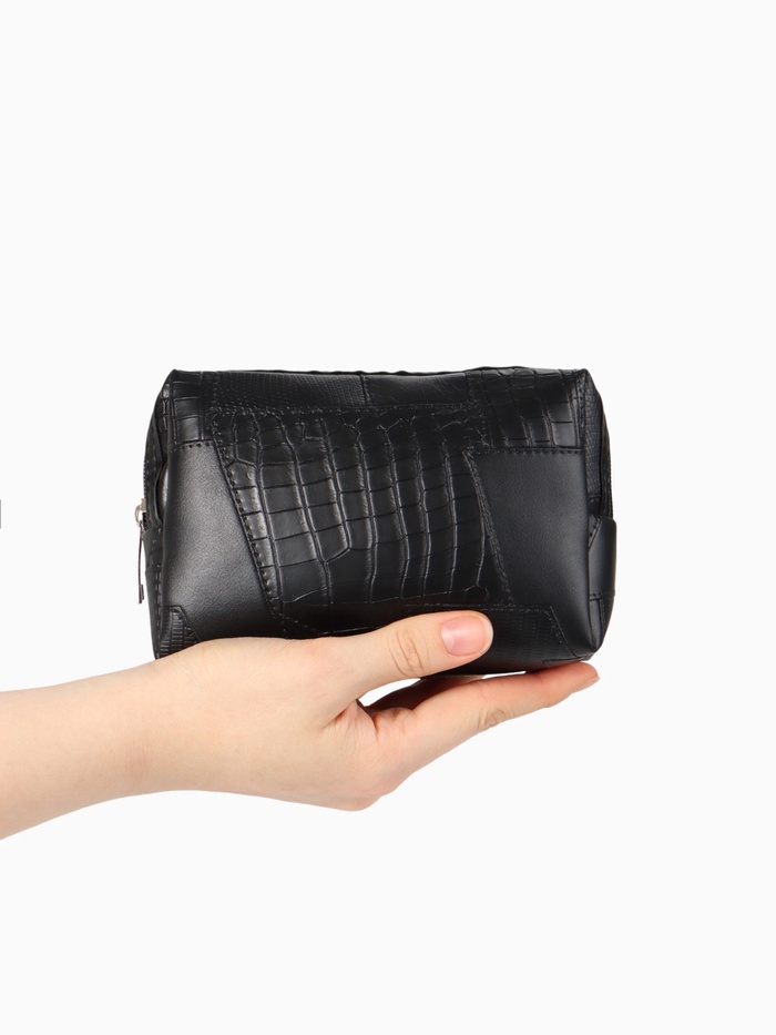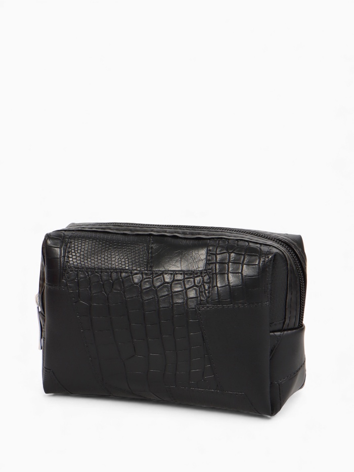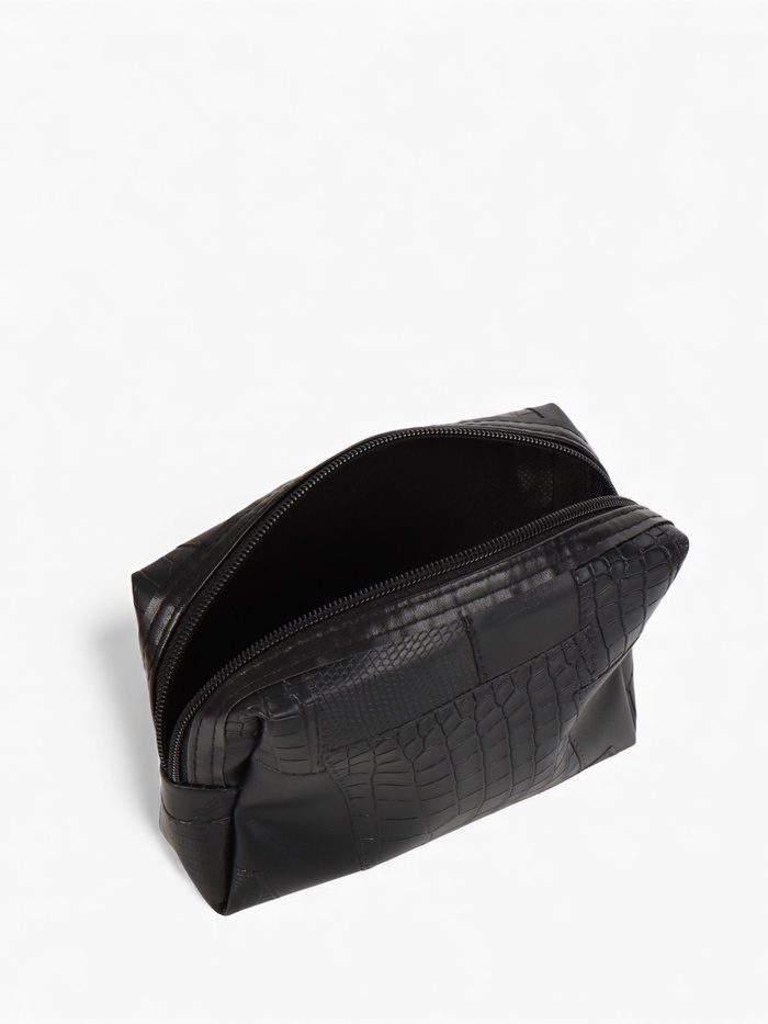 Эта компактная косметичка из искусственной кожи — ваш надёжный спутник для порядка в сумочке или дорожной сумке. Её строгий чёрный цвет и лаконичный дизайн подходят всем, кто ценит функциональность и универсальный стиль.
