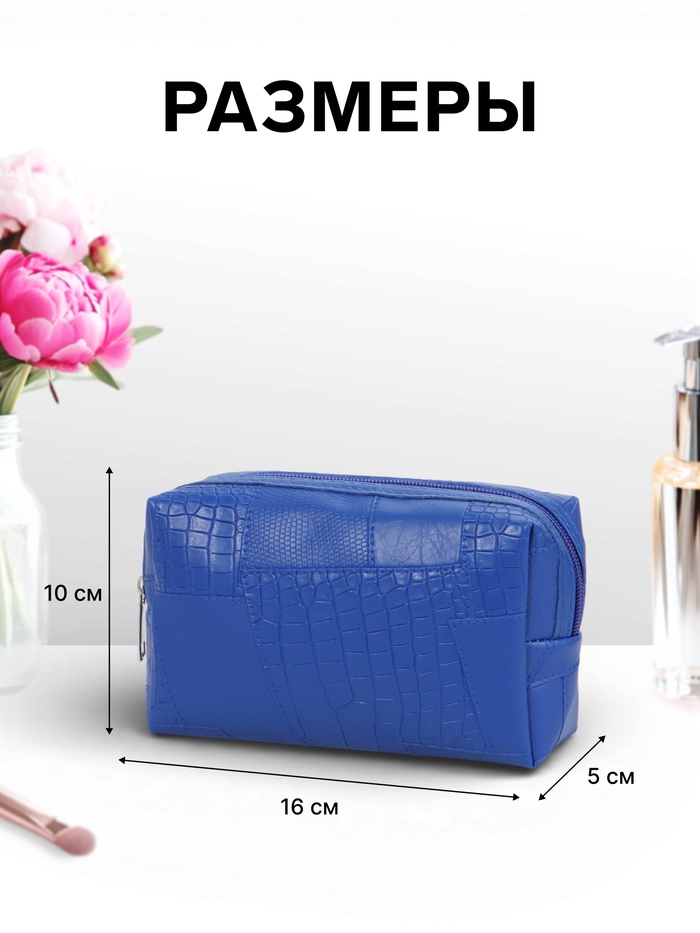 Косметичка ONE COLOR, на молнии, искусственная кожа, синяя — Характеристики