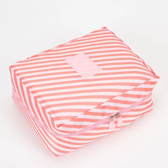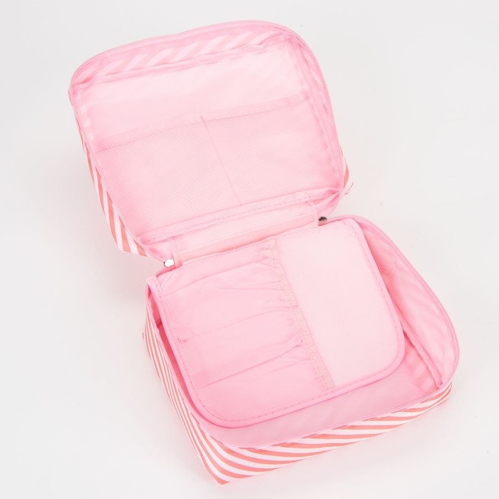 Косметичка-органайзер дорожная на молнии, с карманами, с полосками, розовая — Характеристики