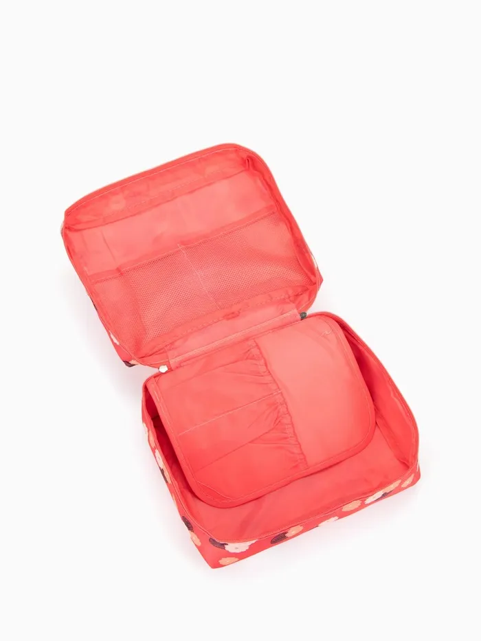 Косметичка - органайзер дорожная на молнии, с карманом, с принтом, красная — Характеристики