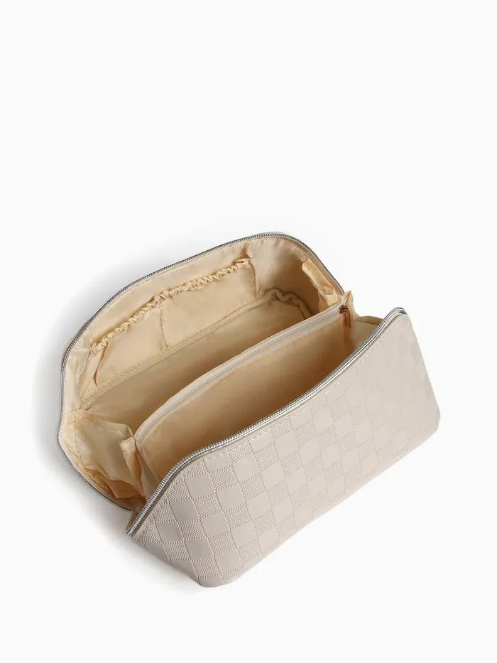 Косметичка-органайзер на молнии, с отделами, ручкой, серо-бежевая — Характеристики