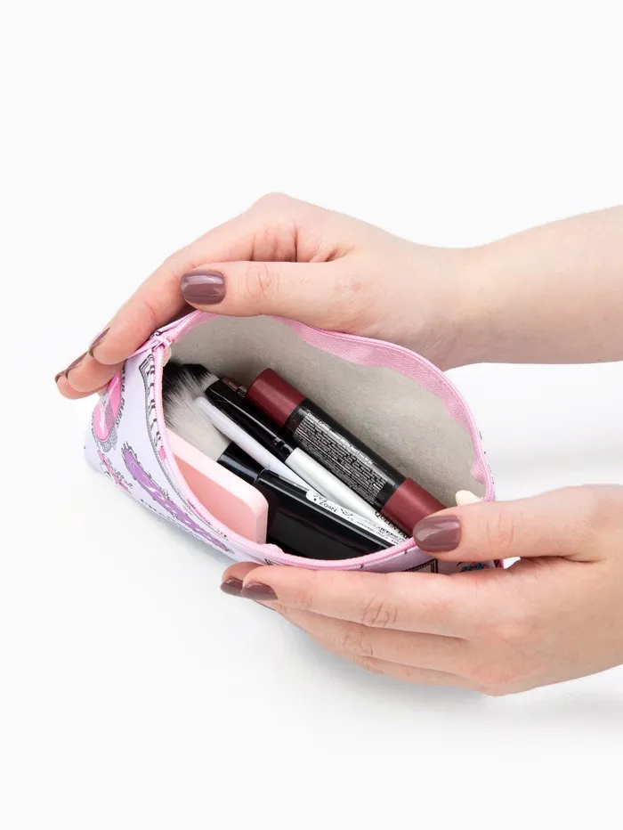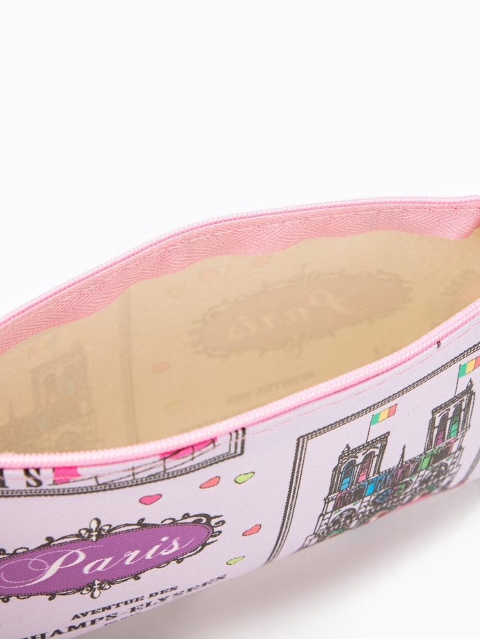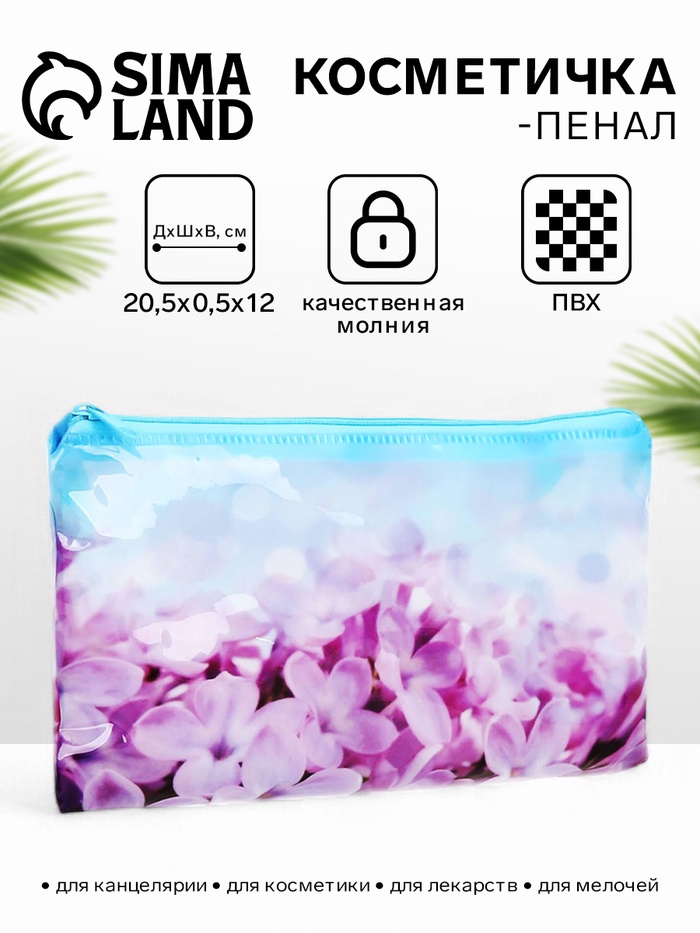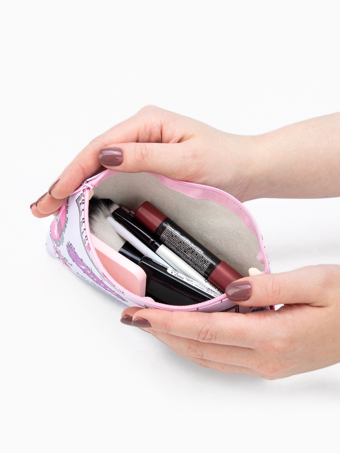 Косметичка-пенал на молнии, плоская, маленькая, с принтом, белая/розовая — Характеристики