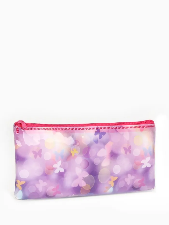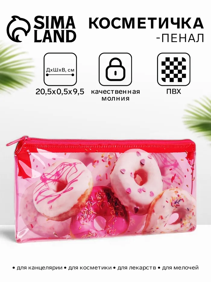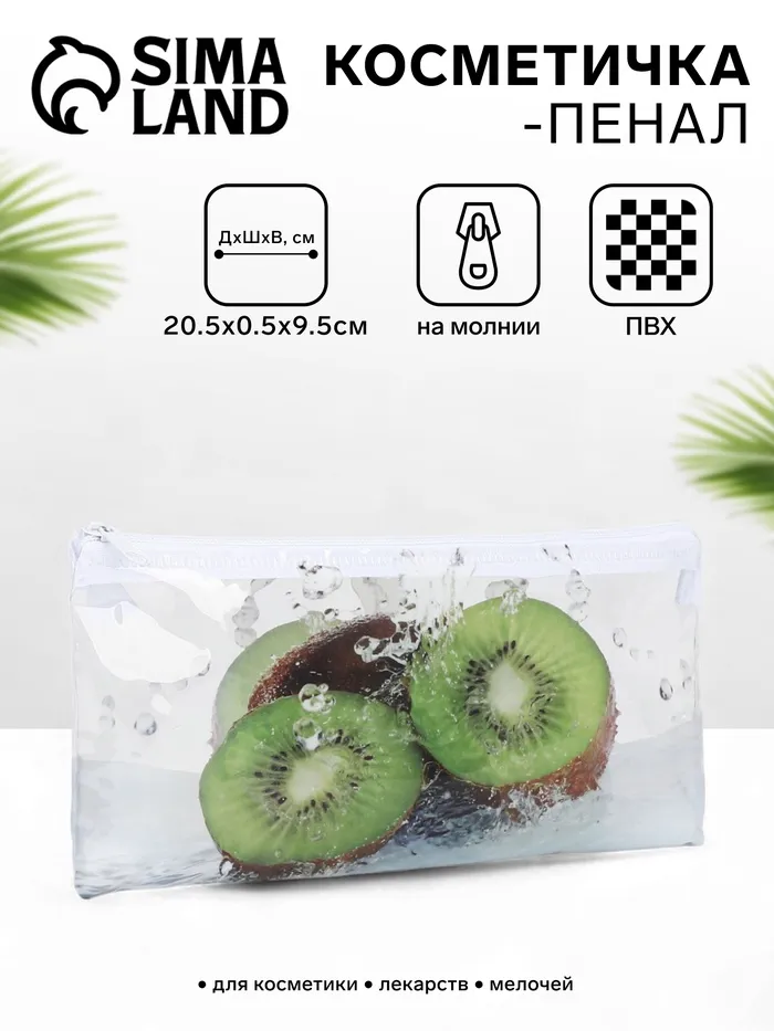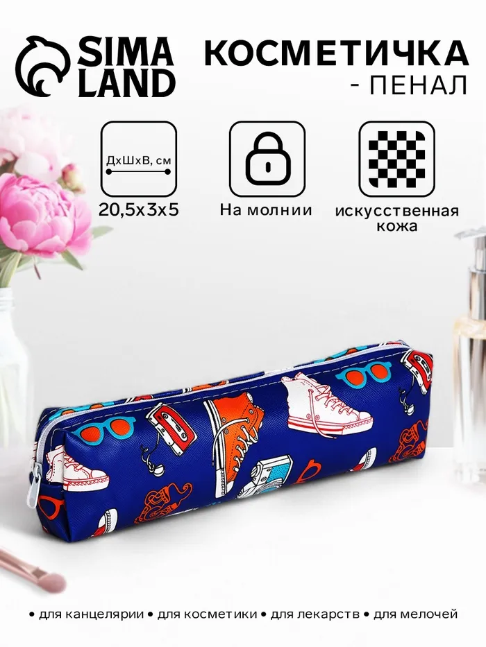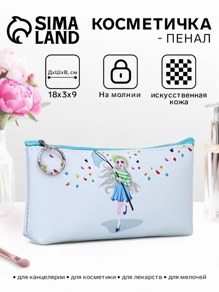 Косметичка-пенал на молнии, плоская, маленькая, с рисунком, голубая — Характеристики