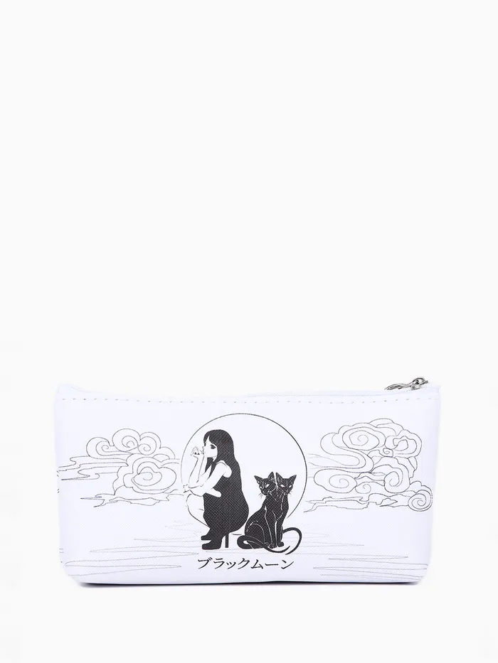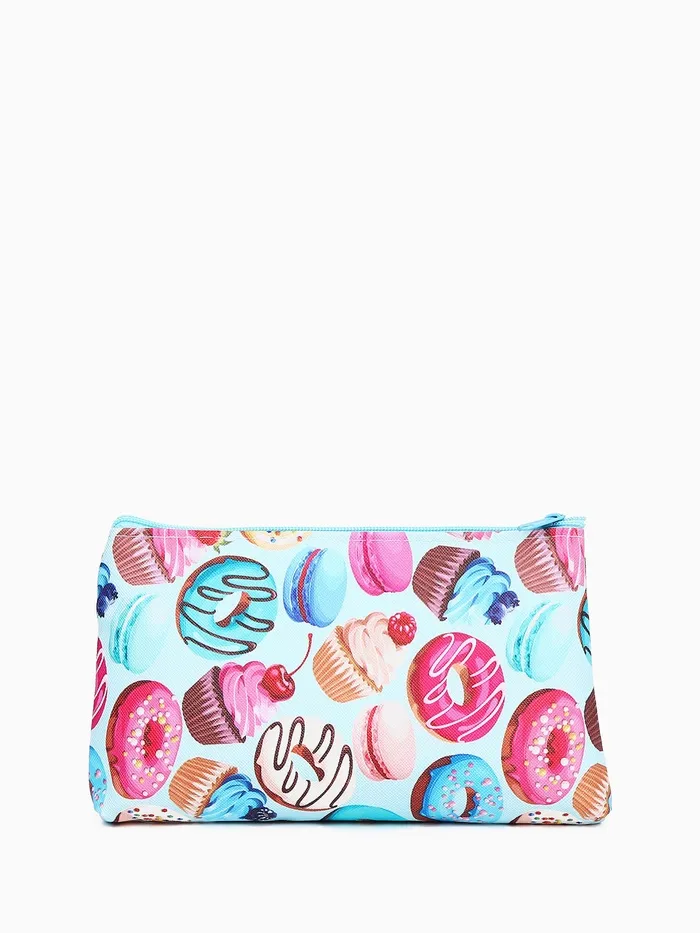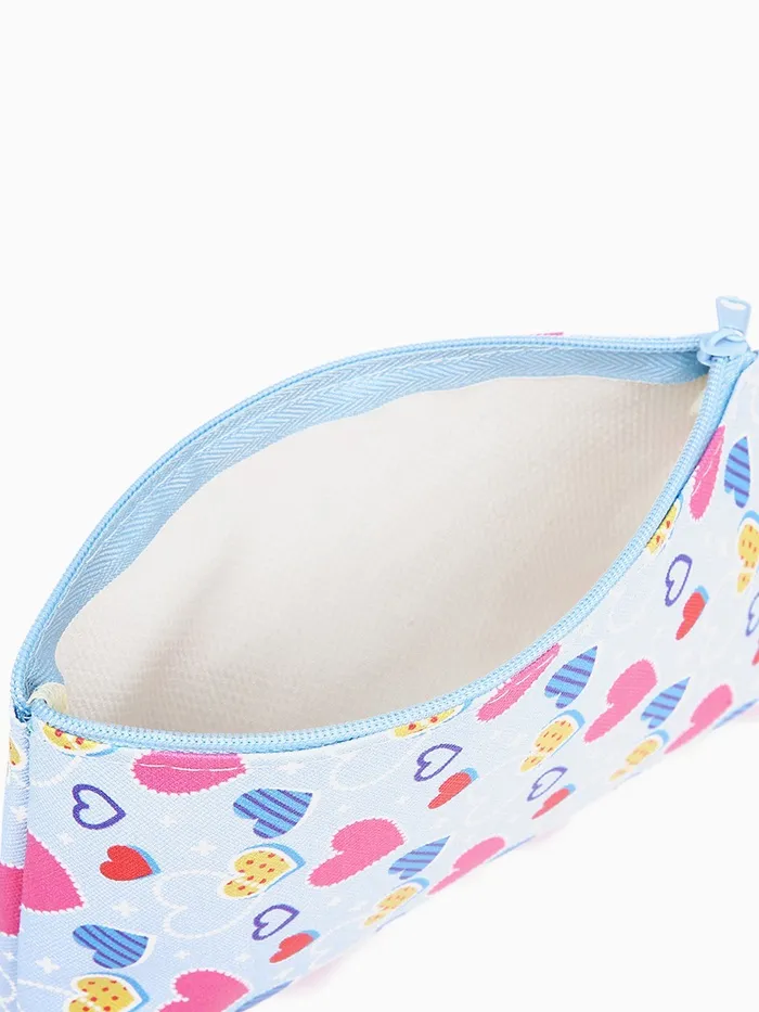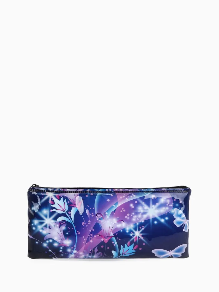 Косметичка-пенал на молнии, плоская, маленькая, с рисунком, голубая