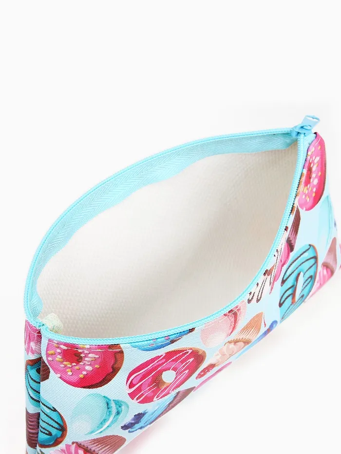 Косметичка-пенал на молнии, плоская, маленькая, с рисунком, голубая/разноцветная — Характеристики