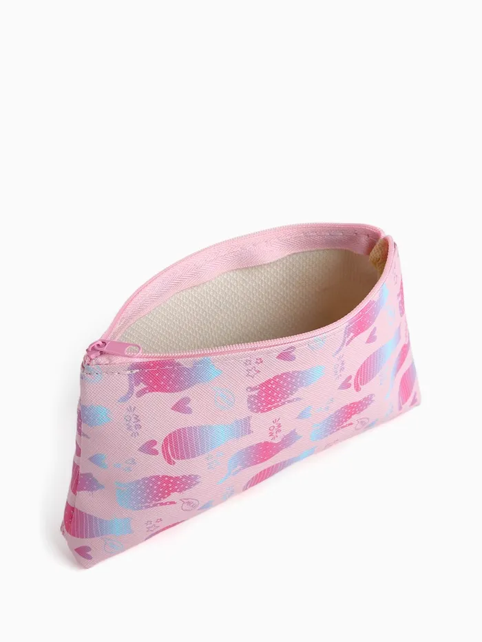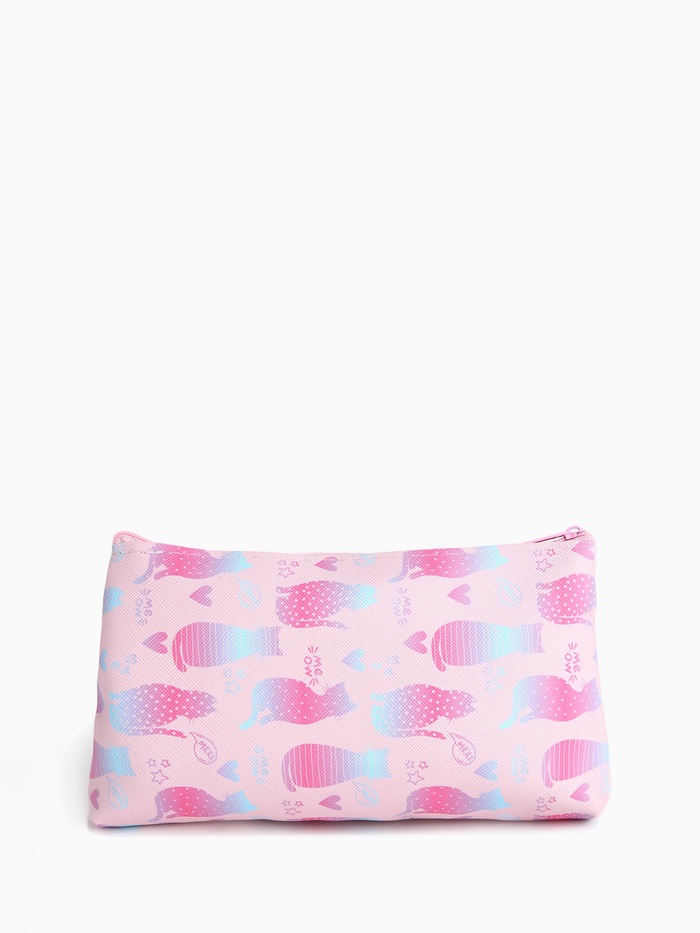 Косметичка-пенал на молнии плоская, маленькая, с рисунком «Кошки», розовая