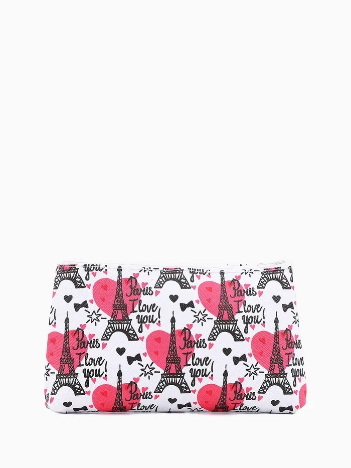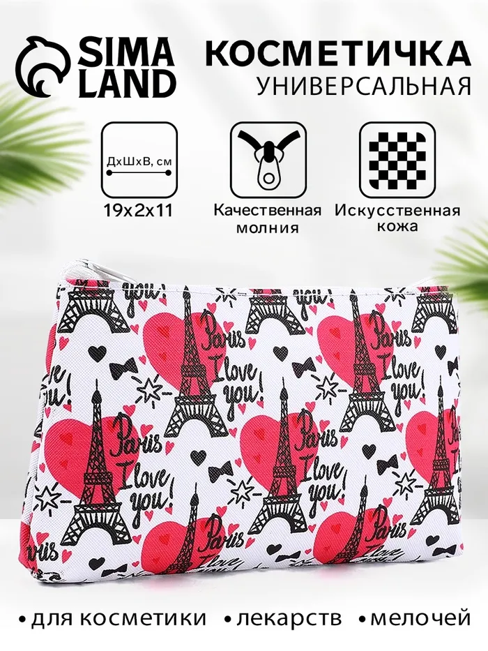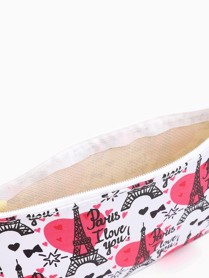 Косметичка-пенал на молнии, плоская, маленькая, с рисунком «Париж», белая — Характеристики