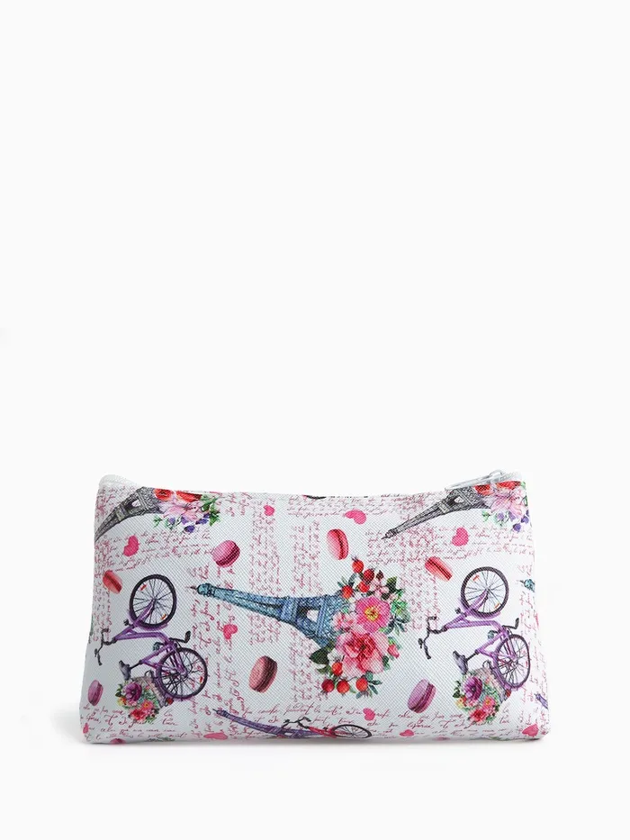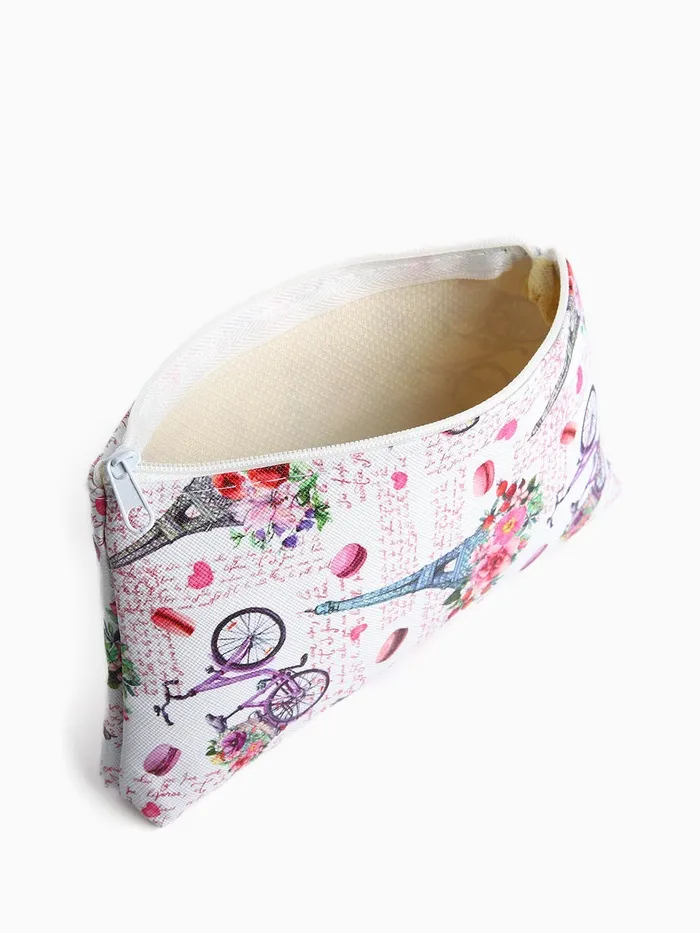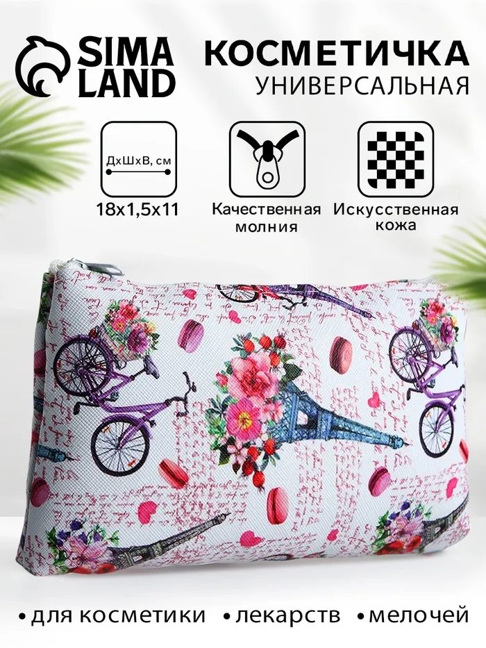 Косметичка-пенал на молнии, плоская, маленькая, с рисунком «Париж», белая/разноцветная — Характеристики