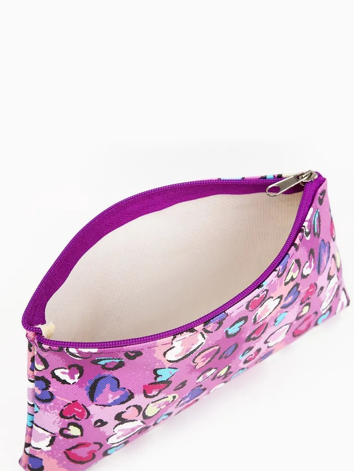 Косметичка-пенал на молнии, плоская, маленькая, с рисунком «Сердечки», розовая/разноцветная — Характеристики