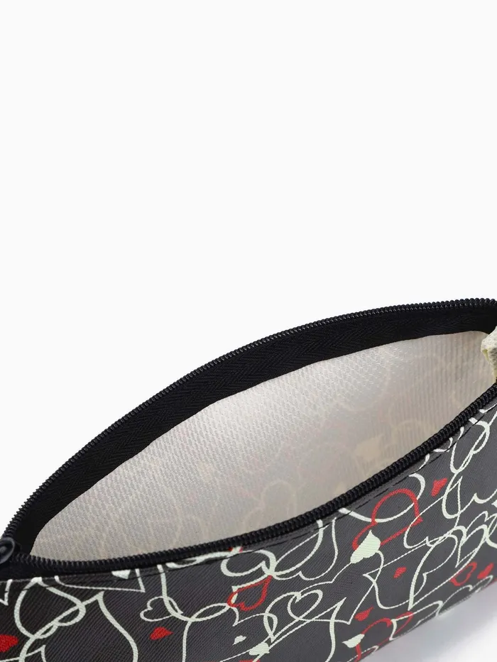 Косметичка-пенал на молнии, плоская, маленькая, с рисунком «Сердца», чёрная — Характеристики