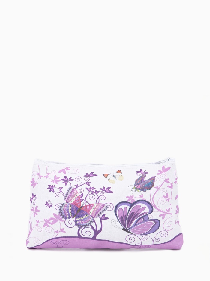 Косметичка-пенал на молнии, плоская, с рисунком «Бабочки», фиолетовая — Характеристики