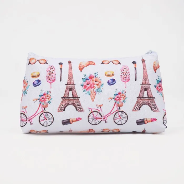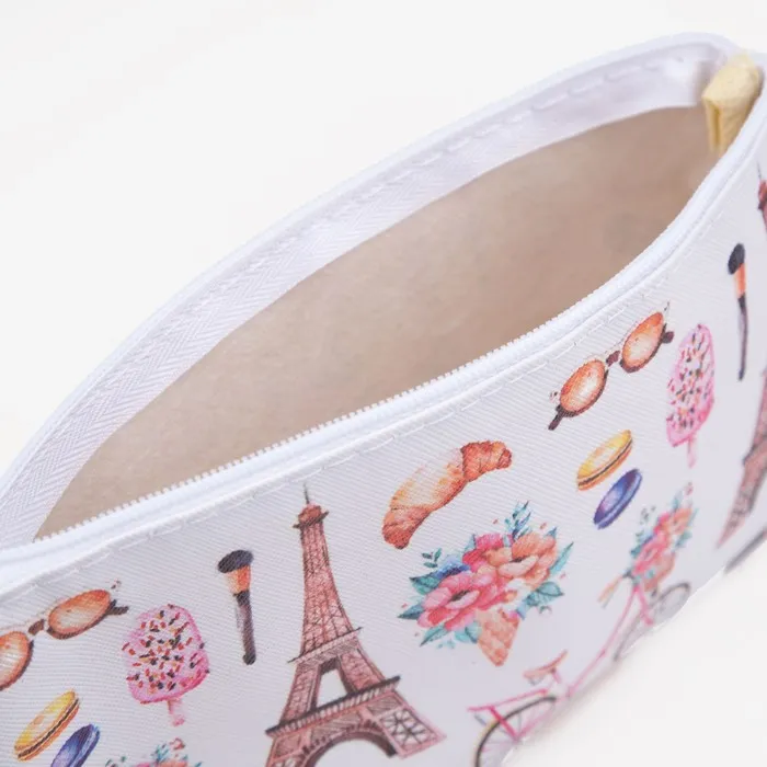 Косметичка-пенал на молнии, плоская, с рисунком, белая/розовая — Характеристики