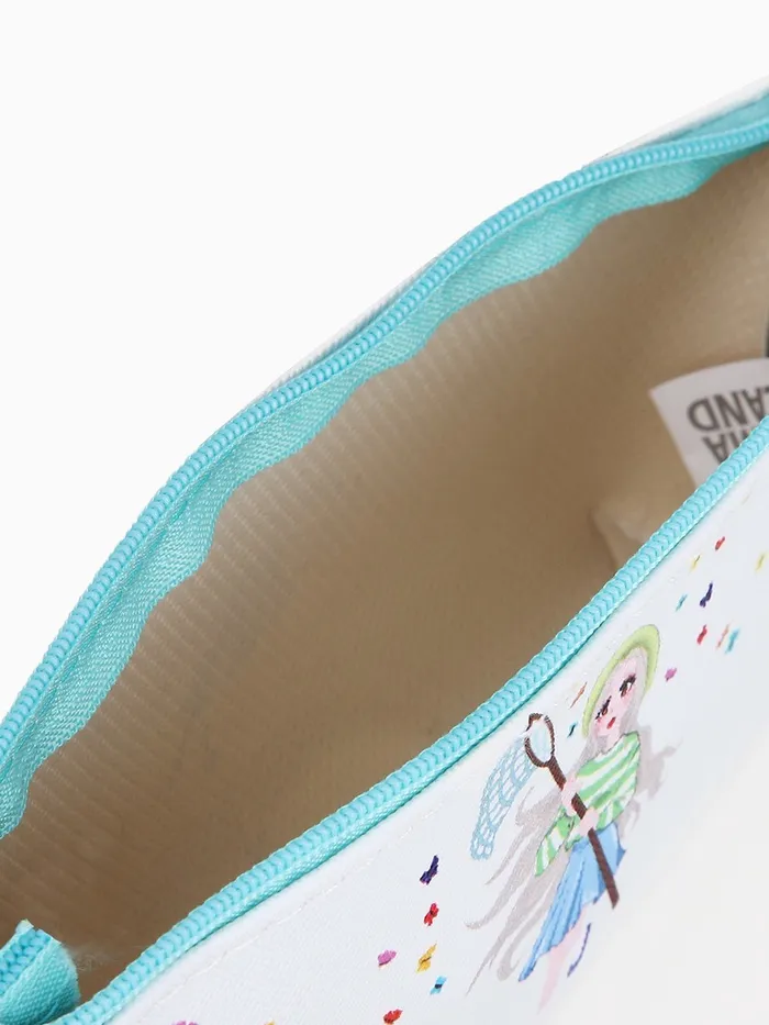 Косметичка-пенал на молнии, плоская, с рисунком, голубая/разноцветная — Характеристики