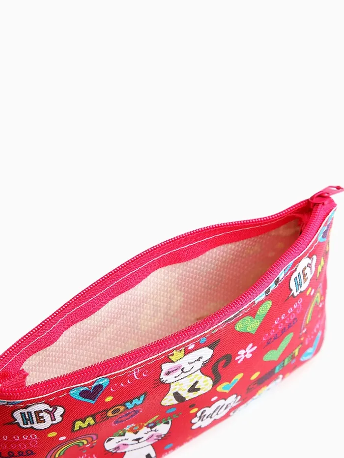 Косметичка-пенал на молнии, плоская, с рисунком, красная — Характеристики